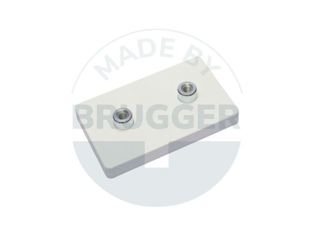 Système magnétique 43x31x6.9mm en NdFeB, enveloppe en caoutchouc blanc, avec 2x filetage femelle, rectangulaire